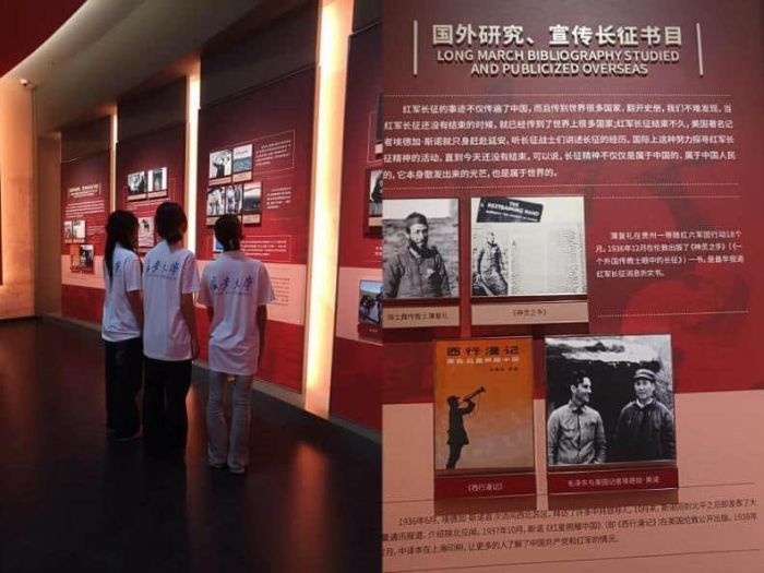 來到雪地講話舊址,1935年11月5日毛主席在漫天風(fēng)雪中發(fā)表勝利宣言,紀(jì)念館展廳內(nèi)種種史料使實(shí)踐隊(duì)員進(jìn)一步加深對(duì)“長征是宣言書,長征是宣傳隊(duì),長征是播種機(jī)。”的理解。參觀結(jié)束后,中共甘泉縣委員會(huì)黨校彭小娥老師帶實(shí)踐隊(duì)師生回顧了長征歷程,并進(jìn)行了與雪地講話相關(guān)的黨史講授。
