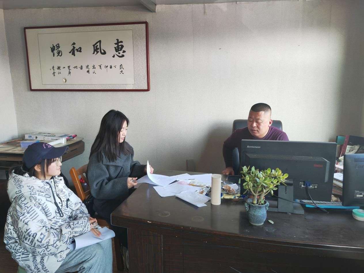 圖2 圖為團隊成員在煙臺市棲霞鄉(xiāng)鎮(zhèn)企業(yè)劉老板進行采訪交談