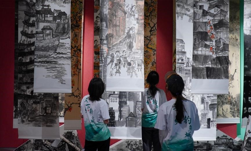 研調(diào)魚城詩(shī)畫院 感悟童趣藝?yán)L韻仲夏之月暑氣漸盛,頂著愈發(fā)熱烈的日光,實(shí)踐團(tuán)一行于7月3日上午八點(diǎn)半出發(fā)前往合川區(qū)美術(shù)館。歷經(jīng)十?dāng)?shù)分鐘的車程,實(shí)踐團(tuán)順利抵達(dá)合川美術(shù)館。館外墻壁噴繪有充滿童趣與奇思妙想的兒童涂鴉,小朋友以孩童獨(dú)有的視角,以畫傳情,展現(xiàn)內(nèi)心對(duì)于美的理解,對(duì)于生活點(diǎn)滴的感悟。