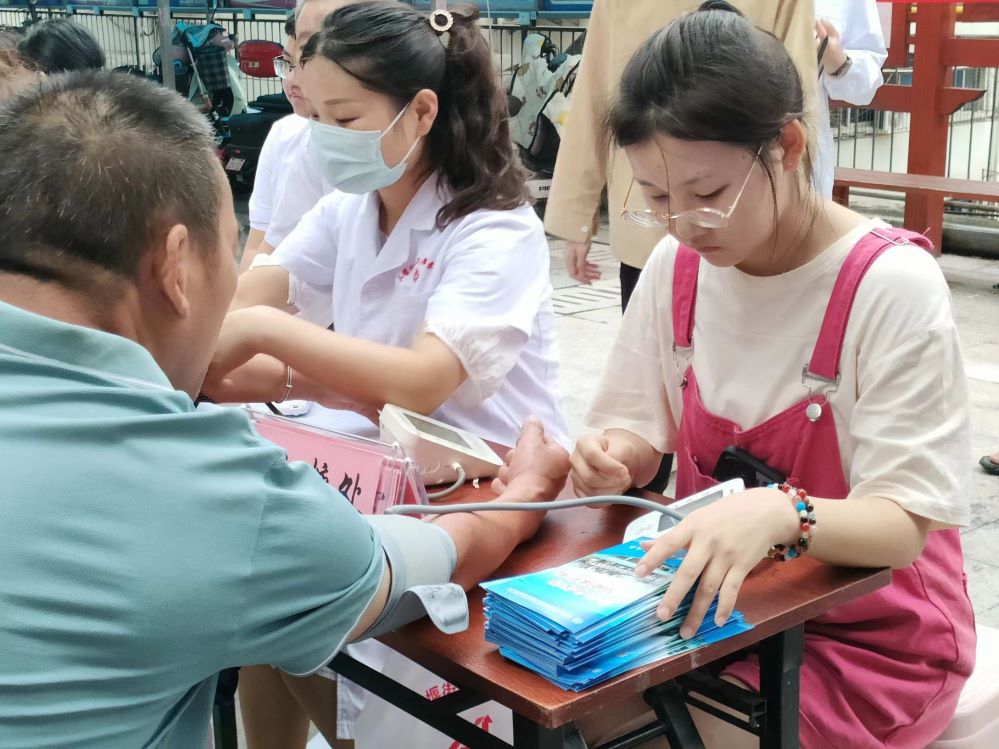 在7月5日,實(shí)踐隊(duì)員們通過(guò)近幾日的學(xué)習(xí)與服務(wù)中心的醫(yī)護(hù)人員一起進(jìn)入居民社區(qū)開展義診活動(dòng),為居民測(cè)量血壓血糖,進(jìn)行口腔檢查和中醫(yī)診斷。