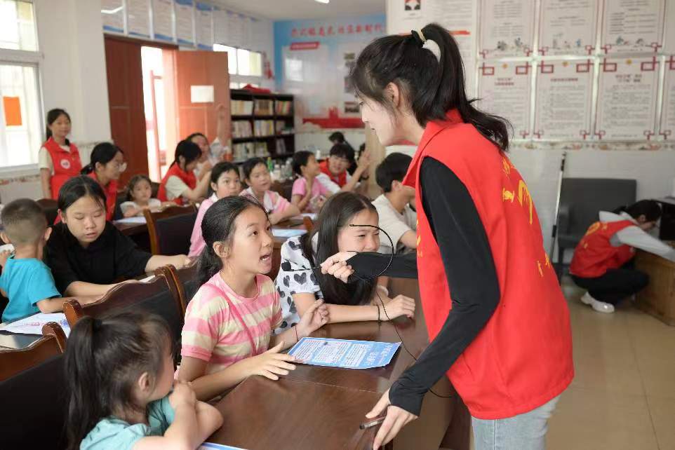 【重慶移通學(xué)院7月7日訊】(通訊員:陳熠)為深入貫徹習(xí)近平總書記關(guān)于教育的重要論述與關(guān)于語言文字工作的重要指示,大力推廣國家通用語言文字工作的重要指示,弘揚中華優(yōu)秀語言文化。7月6日,“天空青年”鄉(xiāng)村振興筑夢實踐團在銅梁區(qū)華興鎮(zhèn),開展普法宣講、漢字印刷國學(xué)系列課堂、愛心助農(nóng)等志愿服務(wù)活動,以實干書寫青春。
