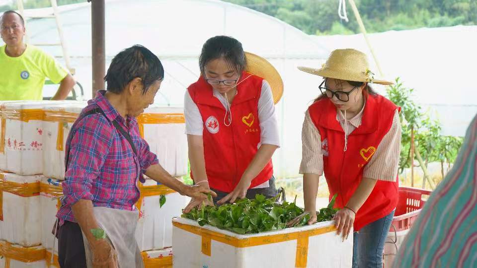蔬果歸倉農(nóng)困解,和諧畫卷又添新7月6日傍晚,銅梁華興鎮(zhèn)農(nóng)田里洋溢著愛心暖流,“天空青年”的志愿者們深入農(nóng)田,助力貧困農(nóng)戶采摘。烈日下,志愿者們與農(nóng)戶一齊,肩扛手提、汗水浸衣,確保蔬菜及時歸倉,極大紓解了當(dāng)?shù)剞r(nóng)困,加速了農(nóng)產(chǎn)品流通,彰顯了青年志愿者的社會溫情與力量;面朝黃土,躬身踐行,他們讓青春在鄉(xiāng)村振興的火熱實踐中綻放實干之花,為鄉(xiāng)村振興獻上青春力量。