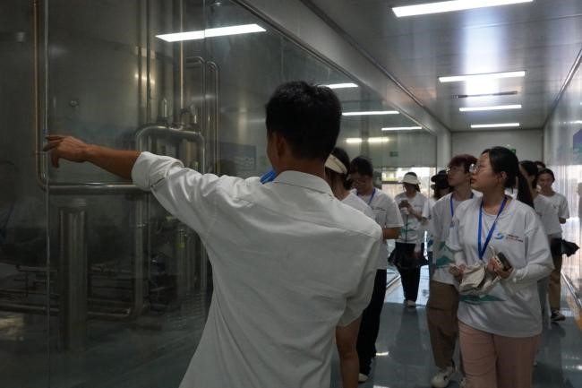 李勇堅廠長以其非凡的熱情和卓越的領(lǐng)導(dǎo)力,迅速成為了“朝陽行”突擊隊此次實(shí)踐活動的精神燈塔。他全程陪同,不僅展現(xiàn)了對企業(yè)深深的自豪感,更傳遞了對青年學(xué)子寄予的厚望與期待。在李廠長的引領(lǐng)下,突擊隊成員們深入畫景礦泉水工廠,親身體驗了這家以純凈水源、先進(jìn)技術(shù)和嚴(yán)格質(zhì)控著稱的企業(yè)的獨(dú)特魅力。