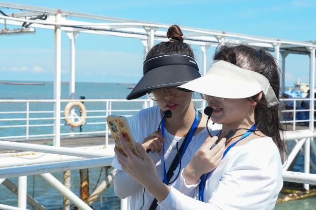 清晨,當(dāng)?shù)谝豢|陽光灑在海面上,突擊隊的成員們已整裝待發(fā),滿懷激情地登上了前往漁場的漁船。在漁民的帶領(lǐng)下,隊員們首先參觀了漁場的現(xiàn)代化養(yǎng)殖設(shè)施,如:深海網(wǎng)箱;親眼見證了新質(zhì)生產(chǎn)力如何助力海洋漁業(yè)實現(xiàn)高效、可持續(xù)發(fā)展。“原來在海中是這樣養(yǎng)魚的!”隊員小何感慨道,其余隊員點頭贊同并高呼“學(xué)到新知識啦!”,這些先進的養(yǎng)殖技術(shù)和設(shè)備讓他們對海洋產(chǎn)業(yè)的認識更進一步,也對祖國海洋產(chǎn)業(yè)的大好發(fā)展前景與魅力深感自豪。