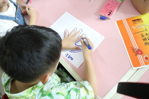 最后,隊(duì)員們帶領(lǐng)小朋友們進(jìn)行手掌畫留念。他們將自己的手掌放在白紙上,然后用彩筆描出自己的手掌印,并且在下方留下自己的名字。一幅幅充滿童趣的手掌畫作品誕生,成為了這次活動的美好見證。