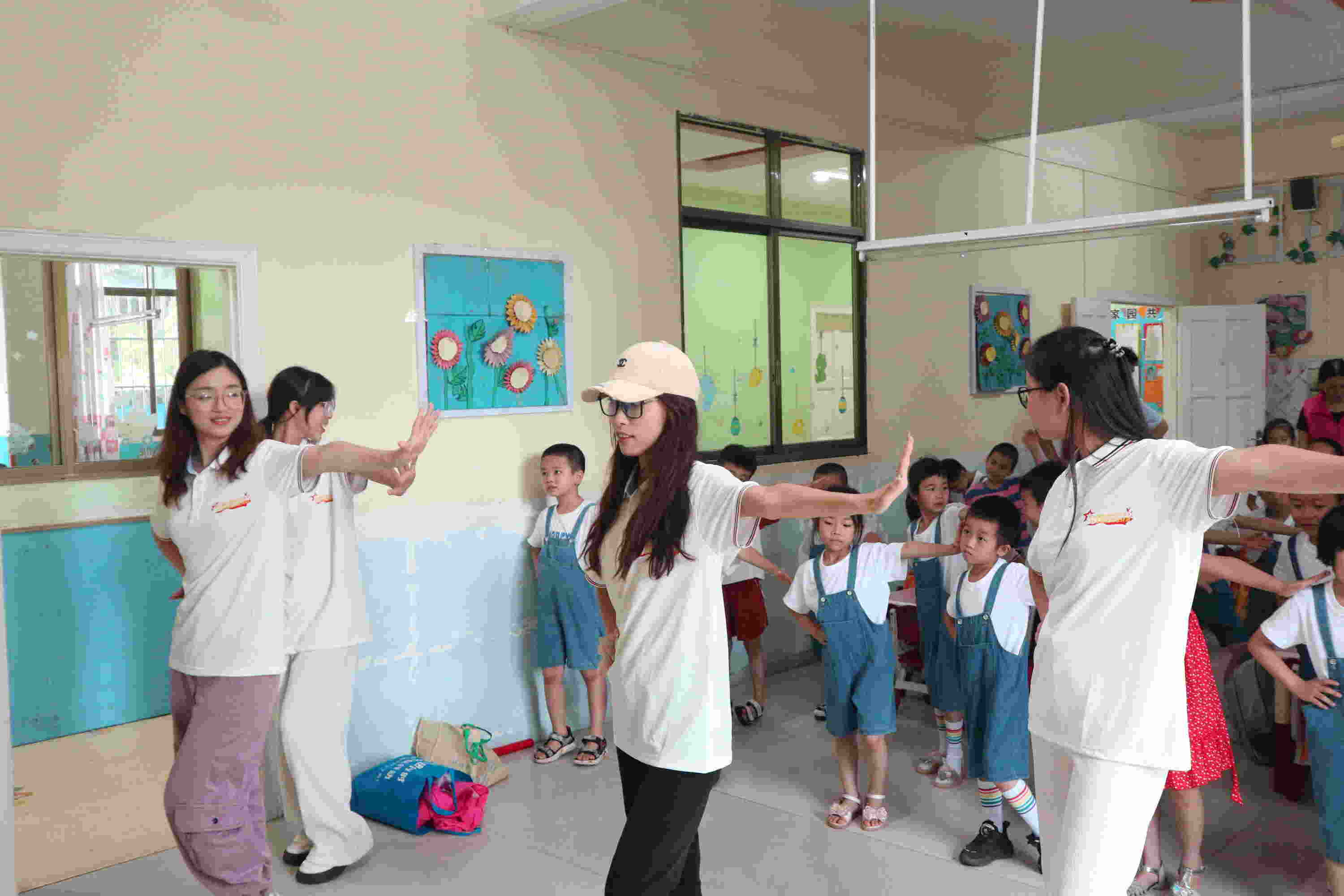 接下來在舞蹈教學(xué)環(huán)節(jié),隊(duì)員們?yōu)樾∨笥褌儨?zhǔn)備了一系列簡單有趣的舞蹈動作,并耐心地教小朋友們模仿。小朋友們在隊(duì)員們的指導(dǎo)下,認(rèn)真地學(xué)習(xí)每一個動作,舞動著自己的小手小腳。在歡快的音樂聲中,大學(xué)生和小朋友們共同完成了一場精彩的舞蹈表演。