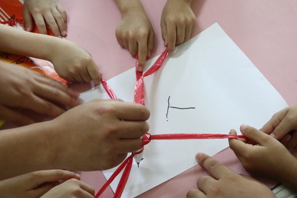隨后,實(shí)踐隊(duì)員組織小朋友們進(jìn)行心理小游戲——合作“聚”給力,他們耐心地給小朋友們講述游戲規(guī)則,并引導(dǎo)他們一步一步地進(jìn)行游戲,合力寫下“人從眾”字。小朋友們專注地跟隨著大哥哥大姐姐的指導(dǎo),盡管他們的筆畫略顯稚嫩,但他們的眼神中透露出對知識的渴望和對成長的期待。在大家的共同努力下,一幅幅的“人從眾”字作品順利完成,小朋友們歡呼雀躍,為他們的成果感到自豪。