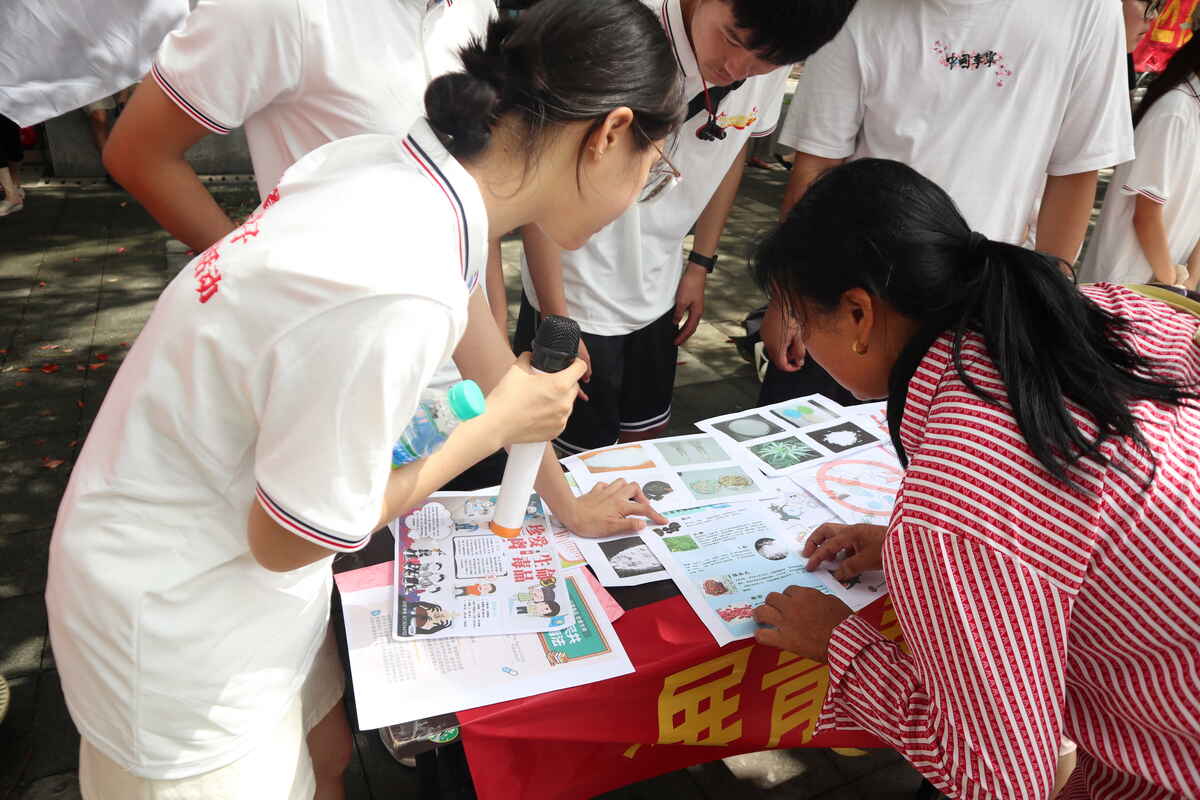 活動開始后,實踐隊員將活動場地分為四個區(qū)域,打造了一場集知識性、互動性和趣味性于一體的禁毒知識主題宣傳活動,吸引大量市民積極參與。在知識學習區(qū),市民通過閱讀宣傳冊、聽取學生講解等方式,深入了解毒品的種類、危害以及禁毒法律法規(guī),幫助市民樹立正確的禁毒觀念。