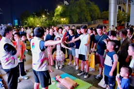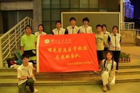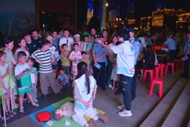 圖為實(shí)踐隊(duì)隊(duì)員在教群眾動(dòng)作。