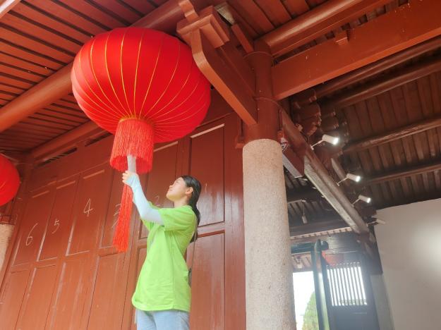 通過老師的講解,實(shí)踐隊(duì)隊(duì)員對(duì)當(dāng)?shù)剞r(nóng)歷二月的添燈文化很是好奇。老師說:“新公”添燈,是戴氏家族獨(dú)有的文化符號(hào)。抱上孫子孫女的“新公”在小小的宗祠,掛上一盞又一盞的燈籠,文化包裹著著幸福,生生不息。
