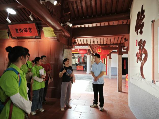 為了更好地了解漳州市長(zhǎng)泰區(qū)的村落發(fā)展和文化之間的關(guān)系,2024年7月8日,福建農(nóng)林大學(xué)農(nóng)學(xué)院赴漳州市長(zhǎng)泰區(qū)“三泰耕讀主題”鮮食玉米調(diào)研實(shí)踐隊(duì)在葉德練老師的帶領(lǐng)下來到了福建省漳州市長(zhǎng)泰區(qū)古農(nóng)村的戴氏宗祠學(xué)習(xí)當(dāng)?shù)匚幕?br /> 古農(nóng)宣傳主任帶領(lǐng)實(shí)踐隊(duì)隊(duì)員參觀當(dāng)?shù)卮魇献陟簦o大家介紹當(dāng)?shù)鬲?dú)特的戴氏宗祠文化。宗祠坐落于古龍小學(xué)的中庭,老師說帶領(lǐng)莘莘孩童從小耳濡目染家族文化是一件身為戴氏子孫引以為豪的事情。