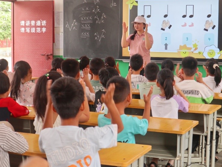 支教隊(duì)員教授音樂知識(攝影/李佳欣)