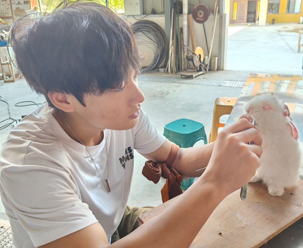圖四 實(shí)踐團(tuán)成員體驗(yàn)兔子標(biāo)本制作