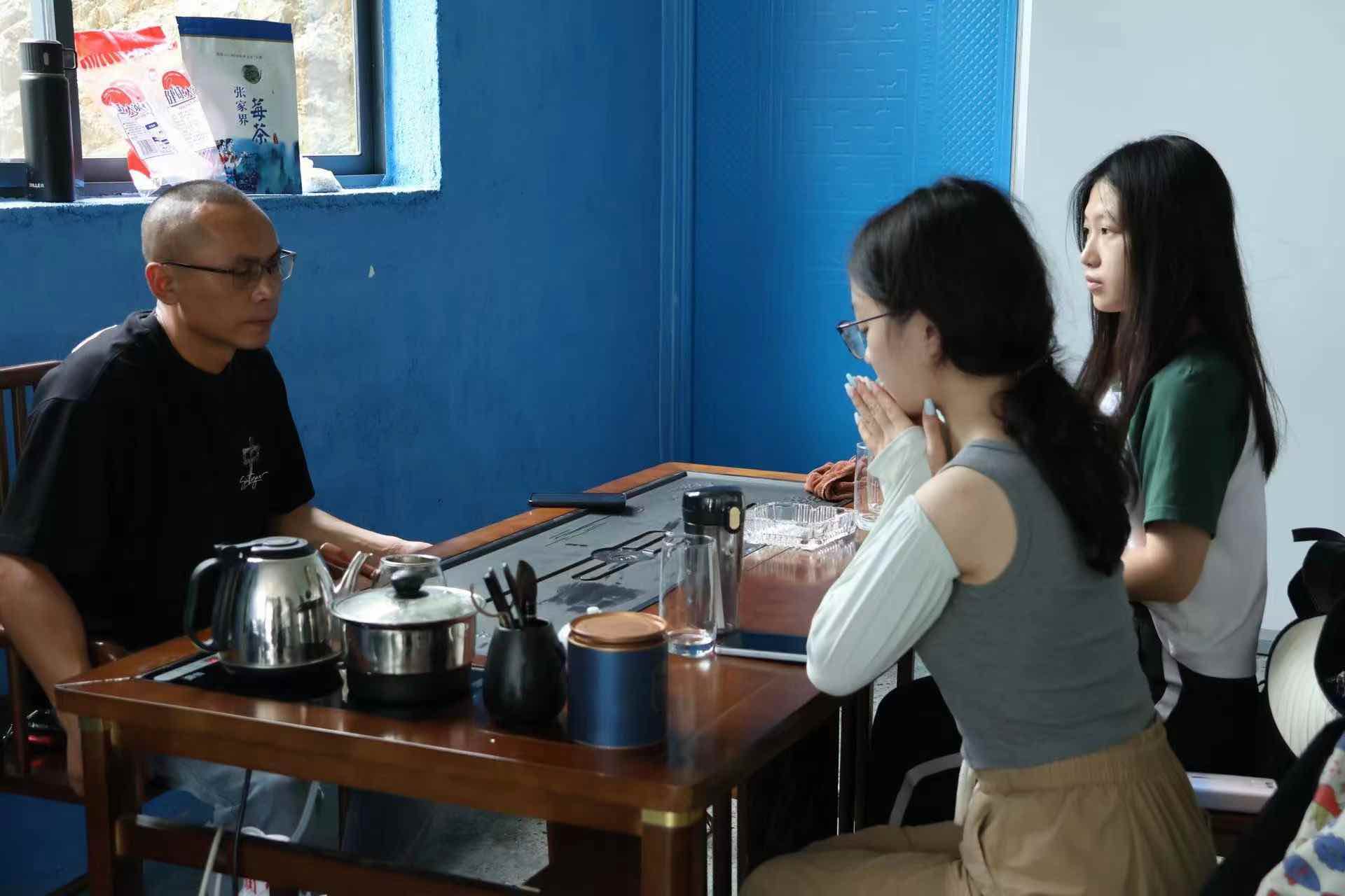 調(diào)研組成員在莓茶加工廠對(duì)丁先春進(jìn)行訪談