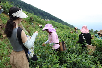 丁先春帶領(lǐng)服務(wù)隊(duì)成員來(lái)到福耳界莓茶基地,進(jìn)行莓茶采摘加工過(guò)程的參觀。實(shí)地參觀過(guò)程中,宣傳組成員對(duì)莓茶的采摘及加工過(guò)程進(jìn)行了拍攝,調(diào)研組成員對(duì)采茶人員及車間加工人員進(jìn)行了提問(wèn)并記錄在冊(cè)。參觀結(jié)束后,調(diào)研組成員圍繞莓茶的生產(chǎn)、宣傳、銷售、加工方面與丁先春進(jìn)行交流,獲得了較為詳細(xì)的相關(guān)信息。