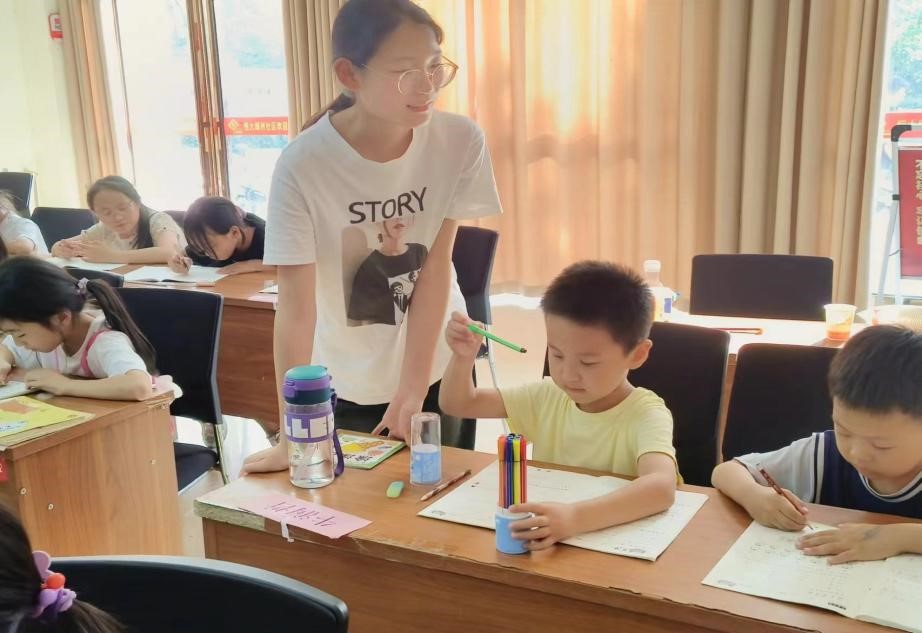 下午,志愿者們幫助孩子們解決各自在完成暑假作業(yè)的過程中出現(xiàn)的問題,并與小朋友們盡享良好的互動和溝通。