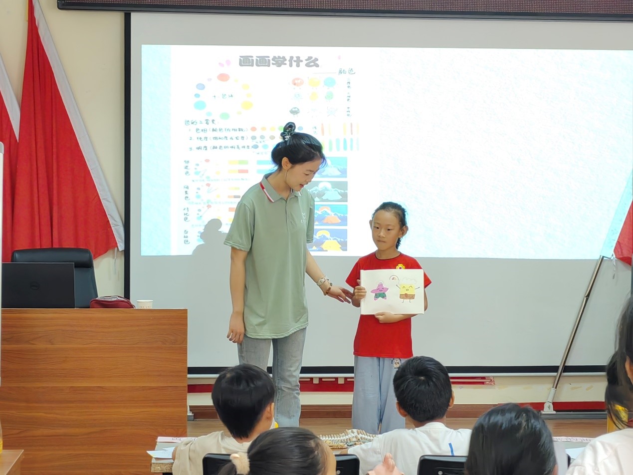 在繪畫課上,張家冉同學(xué)通過講述不同的電影動畫人物,引領(lǐng)小朋友們在繪畫藝術(shù)的海洋里面遨游。