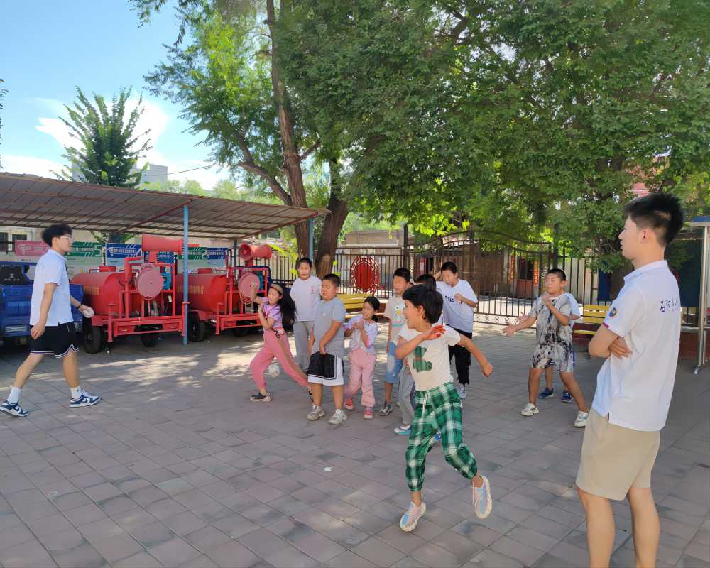 課后,大學(xué)生志愿者帶著小朋友們來(lái)到戶外進(jìn)行體育鍛煉。打籃球、扔沙包、跳大繩等豐富多彩的運(yùn)動(dòng)如火如荼的進(jìn)行著,孩子們的歡聲笑語(yǔ)洋溢著整個(gè)社區(qū)。