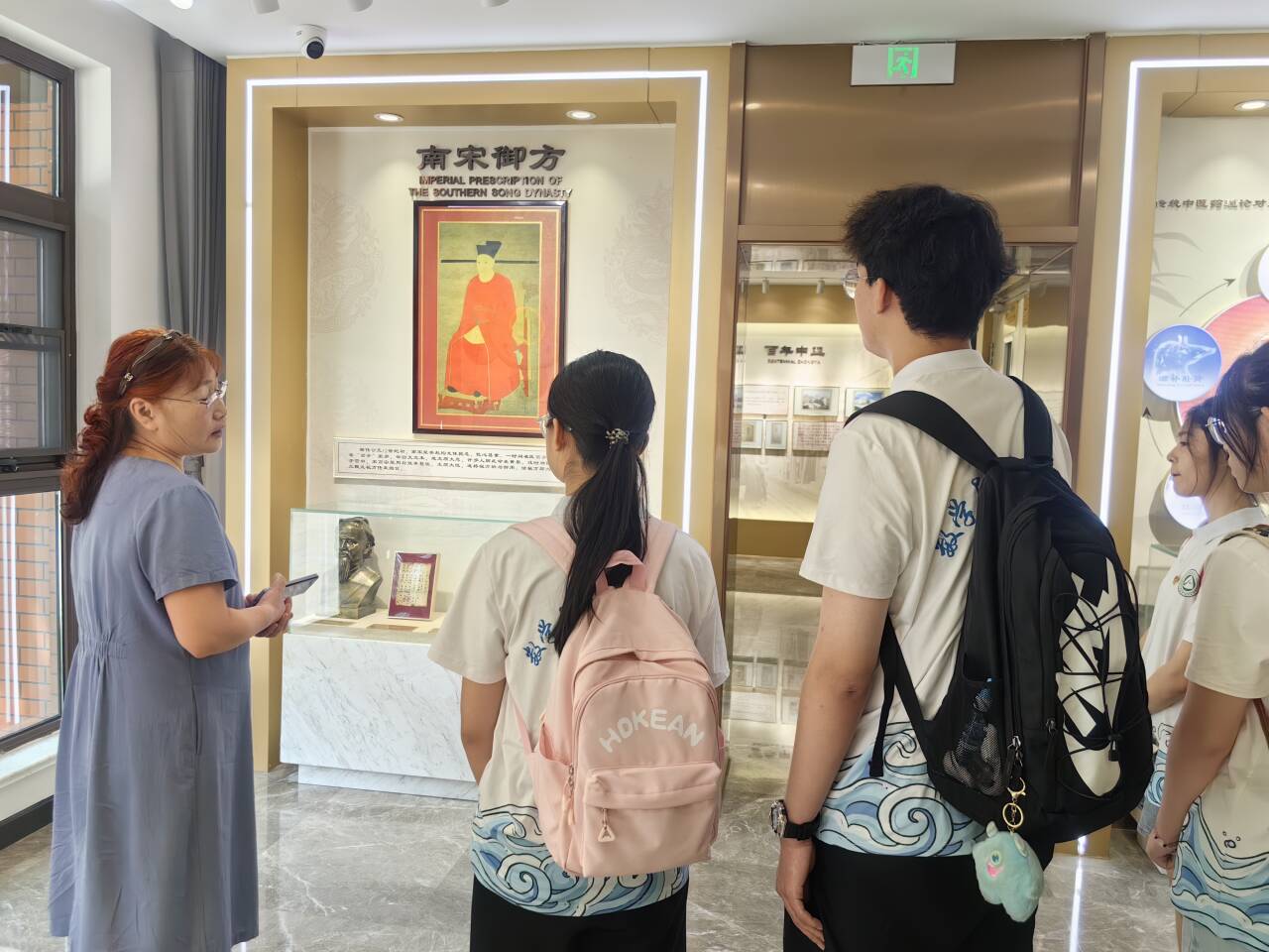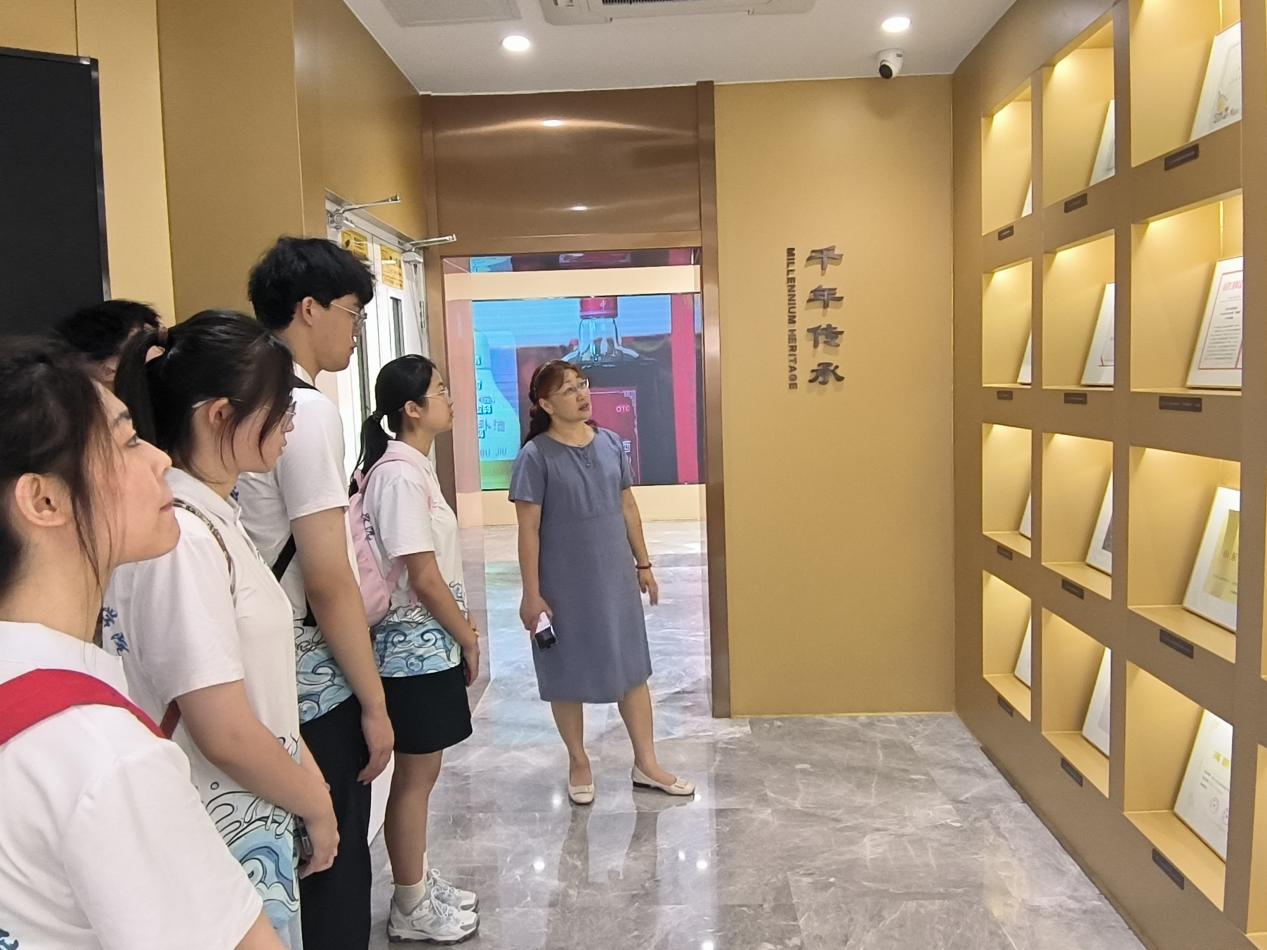 圖為體驗館工作人員向團隊成員講解傳承故事。劉曉宇 攝