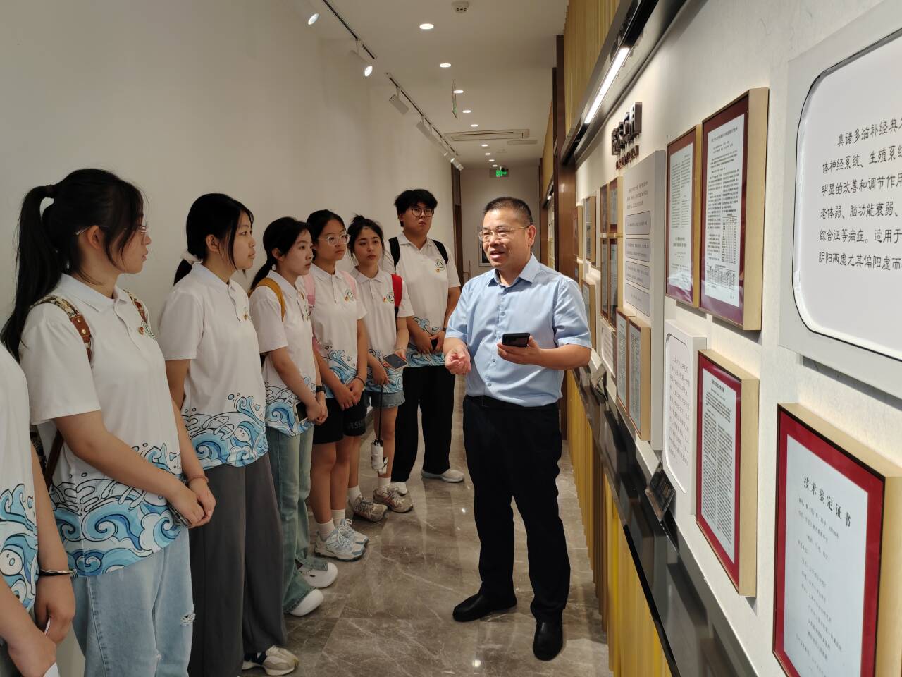 在這個日月其邁、歲律更新的快時代,魯東大學數(shù)學與統(tǒng)計科學學院“星火·追尋”紅色筑夢實踐團踏上了探尋中醫(yī)藥行業(yè)經(jīng)營模式及現(xiàn)代化發(fā)展路徑的征程,于7月9日來到煙臺市中亞至寶三鞭丸體驗館。