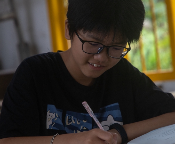 在輔導(dǎo)高年級學(xué)習(xí)的課堂上,陽光透過窗戶灑在課桌上,映照出志愿者和學(xué)生們專注的身影。志愿者們悉心教導(dǎo),耐心地坐在六年級和初中左右的學(xué)生們身旁。一位志愿者與學(xué)生比肩同坐,指著課本上的數(shù)學(xué)題,用溫和而清晰的聲音為學(xué)生講解解題思路。學(xué)生皺著眉頭,認(rèn)真傾聽,不時(shí)點(diǎn)點(diǎn)頭,眼中逐漸流露出恍然大悟的神情。另一個(gè)角落里,志愿者正和一位初中生探討著英語語法,手中的筆在紙上不停地比劃著,口中不斷重復(fù)著關(guān)鍵的知識點(diǎn)。還有學(xué)生在得到老師們的指點(diǎn)茅塞頓開后,細(xì)心認(rèn)真地寫著自己的作業(yè)與練習(xí)。