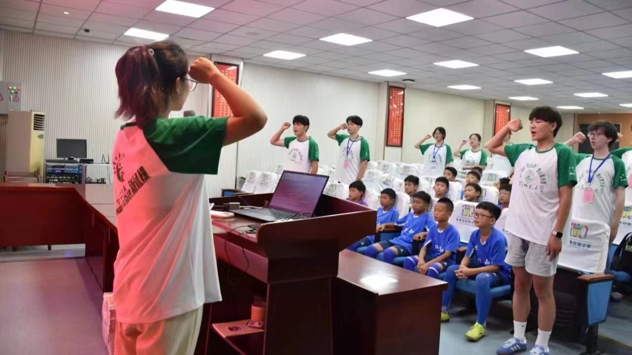 在殷晨希副隊(duì)帶領(lǐng)下,孩子們進(jìn)行了他們的專屬開營宣誓,希望他們?cè)诮酉聛淼挠?xùn)練生活中,可以不畏酷暑,堅(jiān)毅勇敢,以積極樂觀的心態(tài)享受綠茵與驕陽。“咔嚓”,快門聲響起,孩子們的笑臉和隊(duì)員們的面容定格在了相機(jī)里,留下了一抹獨(dú)屬于我們的絢爛色彩。