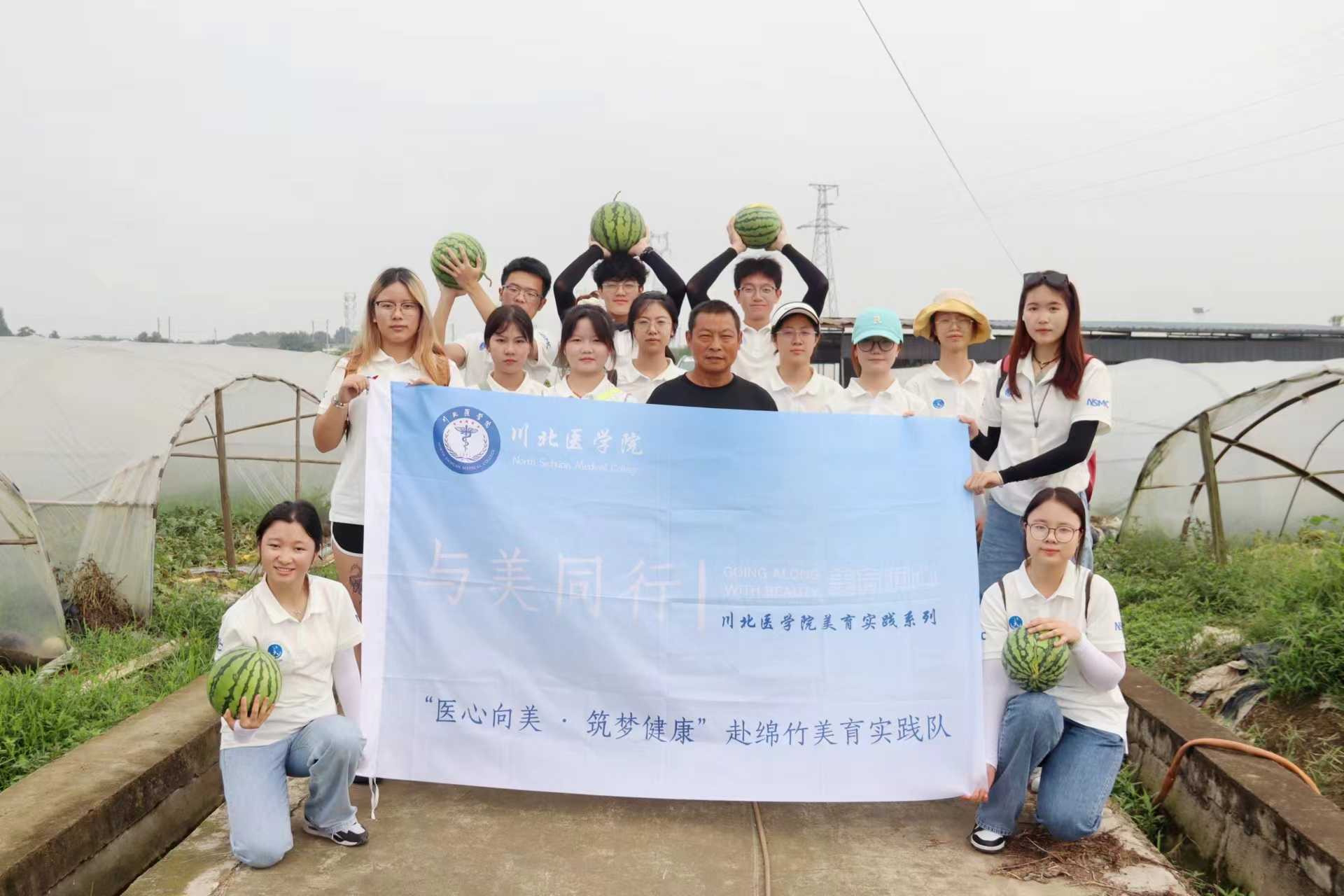 2024年7月12日,在炎炎夏日里,綿竹年畫(huà)村的瓜田迎來(lái)了一年中最繁忙的豐收季。今日,川北醫(yī)學(xué)院“醫(yī)心向美 · 筑夢(mèng)健康”美育實(shí)踐隊(duì)隊(duì)員,帶著對(duì)農(nóng)業(yè)的深情與敬意,走進(jìn)了這片充滿希望的土地,共同開(kāi)展了一場(chǎng)以“瓜果覆地品甜蜜,產(chǎn)業(yè)振興滿新村”為主題的社會(huì)實(shí)踐活動(dòng)。清晨,實(shí)踐隊(duì)在瓜田主人的熱情接待下,來(lái)到了綠意盎然的瓜田。隊(duì)員們身著統(tǒng)一的服裝,手持工具,與瓜農(nóng)們并肩作戰(zhàn),親身體驗(yàn)了采摘、搬運(yùn)、裝筐等農(nóng)作活動(dòng)。汗水浸濕了衣背,但每個(gè)人的臉上都洋溢著笑容。在這片充滿活力的田野上,青春與勞動(dòng)之美交相輝映。活動(dòng)過(guò)后,瓜田主人熱情的邀請(qǐng)我們品嘗了他親手種的西瓜,每一聲問(wèn)候都蘊(yùn)含著隊(duì)員們對(duì)農(nóng)民辛勤付出的深深敬意和對(duì)美好生活的共同向往。隊(duì)員們紛紛表示,西瓜的甘甜不僅溫暖了他們的心田,更拉近了彼此之間的距離。