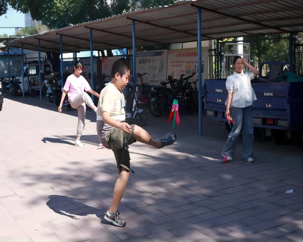 烈日驕陽(yáng),青春迸發(fā)。在踢毽子的活動(dòng)中,孩子們手持五彩斑斕的毽子,站在劃定的區(qū)域內(nèi),全神貫注地踢出毽子。每當(dāng)毽子在空中劃過(guò)優(yōu)美的弧線,穩(wěn)穩(wěn)地落在腳背上,現(xiàn)場(chǎng)便響起陣陣掌聲和歡呼聲。那些未能成功接住毽子的小朋友們也不氣餒,他們迅速拾起毽子,調(diào)整姿態(tài),準(zhǔn)備下一次的挑戰(zhàn)。