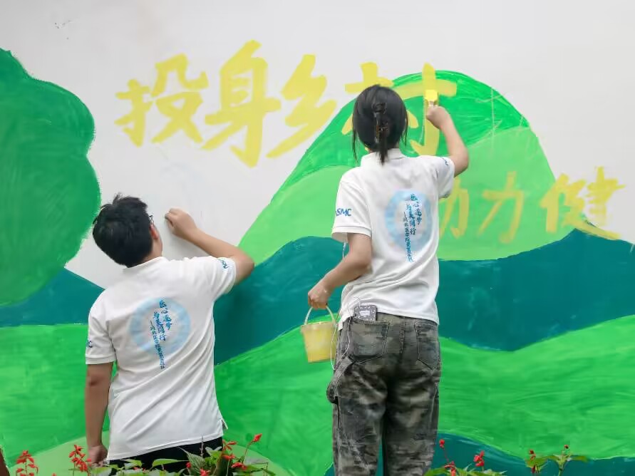 彩繪現(xiàn)場,隊員們手持畫筆,通過生動的圖案和正能量標語,結(jié)合專業(yè)所學,將一面面空白墻面變成了一幅幅充滿鄉(xiāng)村氣息又飽含醫(yī)學特色的彩繪作品。這些彩繪作品不僅美化了鄉(xiāng)村環(huán)境,更在潛移默化中提升了村民們的健康意識和文明素質(zhì)。