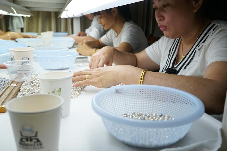 圖為工人正在挑選珍珠 徐于婷攝