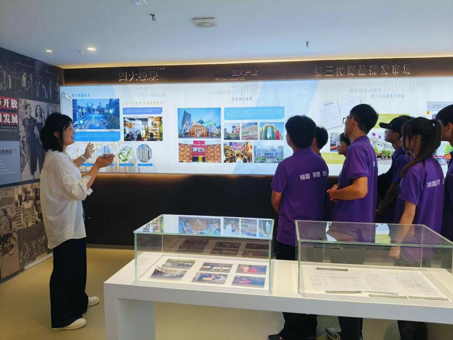 (長樂西路街道辦工作人員帶領參觀) 隨后,工作人員為實踐隊講解并展示了長樂街道的三項惠民利民措施:整合醫(yī)療資源,打造一站式服務,以及設立專業(yè)直播間進行直播帶貨。