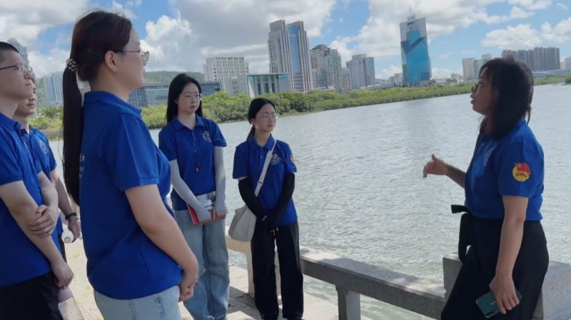 陽光照耀下的筼筜湖,浮光躍金。周麗芳老師進行了現(xiàn)場授課,以筼筜湖的治理為例,向?qū)嵺`隊員們講解了習近平總書記的綠色發(fā)展理念以及習近平生態(tài)文明思想所蘊含的人民至上等重要觀念。