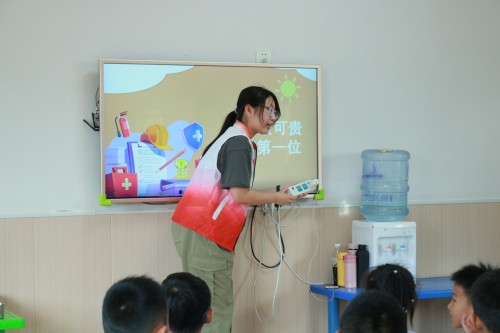 團(tuán)隊(duì)成員在村委會(huì)的安排下于楊寨村幼兒園開展公益課堂,課堂以“祖國旗幟在我心”為主題,帶領(lǐng)小朋友們學(xué)習(xí)祖國旗幟、演唱紅色歌曲,學(xué)習(xí)紅色知識(shí),培養(yǎng)孩子們的愛黨愛國情懷,讓愛黨愛國的精神根植在孩子們心中。針對(duì)幼兒園即將進(jìn)入暑期假期,團(tuán)隊(duì)還給兒童們帶來了“安全自護(hù)我知道”主題課堂,通過講做并舉的方式,幫助兒童掌握居家安全的相關(guān)知識(shí),提高安全意識(shí),兒童們積極互動(dòng),反響熱烈。團(tuán)隊(duì)在實(shí)踐過程中關(guān)注鄉(xiāng)村兒童的成長(zhǎng),結(jié)合專業(yè)特長(zhǎng),實(shí)地調(diào)研楊寨村鄉(xiāng)村教室光環(huán)境和健康照明情況,并對(duì)鄉(xiāng)村兒童的視力健康進(jìn)行了調(diào)查研究。