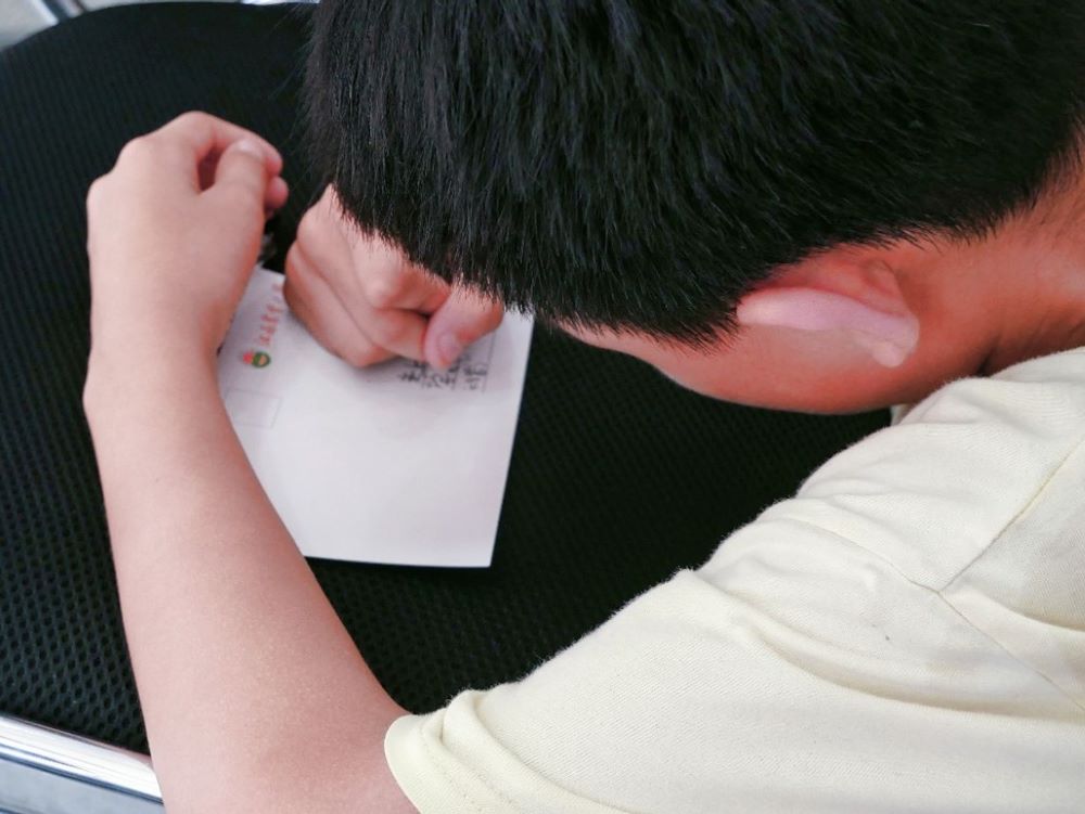 書(shū)信傳遞真情。活動(dòng)過(guò)程中,團(tuán)隊(duì)成員向孩子們介紹了書(shū)信的書(shū)寫(xiě)格式,積極鼓勵(lì)孩子們抒寫(xiě)心聲,暢想未來(lái)。以中華傳統(tǒng)書(shū)信文化為載體,有小學(xué)五年級(jí)的學(xué)生給爸爸媽媽寫(xiě)信,談及自己最近的學(xué)習(xí)和生活情況;有六年級(jí)畢業(yè)班的同學(xué)寫(xiě)給未來(lái)的自己,希望那時(shí)已經(jīng)考上清華北大;有小學(xué)三年級(jí)的學(xué)生給祖國(guó)寫(xiě)信,祝祖國(guó)繁榮昌盛,越來(lái)越好。一封封書(shū)信里,橫豎撇捺、點(diǎn)提鉤折,每一筆都蘊(yùn)含著孩子們純真無(wú)邪的童心,每一劃都傳遞著他們對(duì)知識(shí)的渴望、對(duì)祖國(guó)的熱愛(ài)以及對(duì)未來(lái)世界的美好憧憬與責(zé)任擔(dān)當(dāng)。