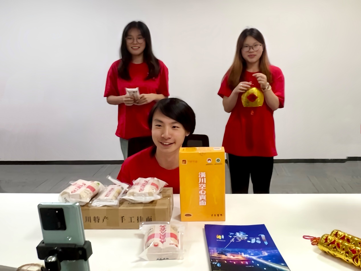 實(shí)踐團(tuán)成員進(jìn)行助農(nóng)直播
