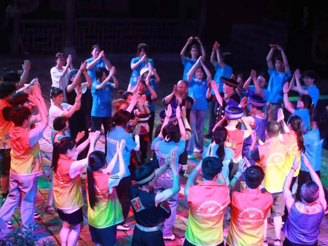 此外,吹木葉和耍鑼鼓等項(xiàng)目也讓隊(duì)員們大開眼界。這些傳統(tǒng)技藝需要精湛的技巧和長期的練習(xí),但在活動(dòng)現(xiàn)場,隊(duì)員們也在專業(yè)人士的指導(dǎo)下,體驗(yàn)了這些傳統(tǒng)技藝的樂趣。最后,在酉陽村民的熱情邀請(qǐng)下,隊(duì)員們紛紛加入其中,在柔和的燈光下體驗(yàn)擺手舞。