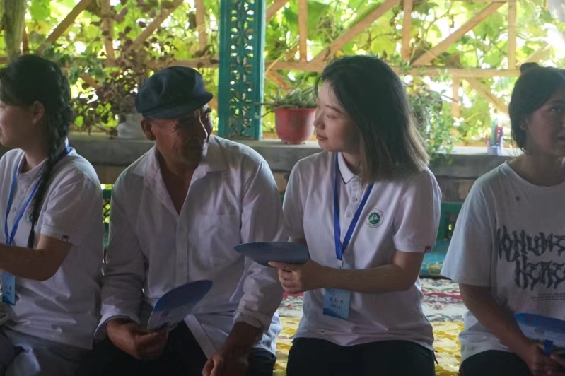宣講結(jié)束后,當(dāng)?shù)厝罕姛崆榈匮垐F(tuán)隊成員到家中休憩。在交流期間,這位群眾談到各族人民應(yīng)當(dāng)像石榴籽一樣緊緊抱在一起,如此才能促使新疆走向繁榮。他對團(tuán)隊宣講成員的表現(xiàn)給予了高度評價,并支持每一位大學(xué)生投身于建設(shè)新疆的宏偉事業(yè)中。