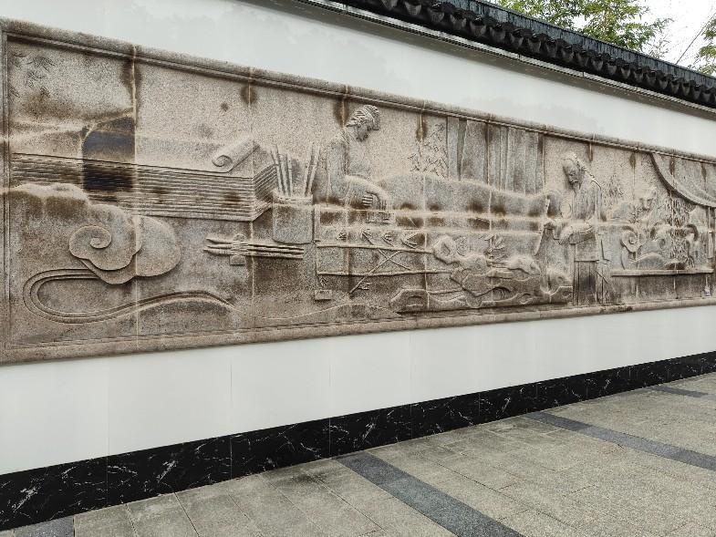 參觀完博物館內(nèi)部,實(shí)踐團(tuán)走出博物館,周遭景致如畫卷般徐徐展開,盡顯文化園獨(dú)特風(fēng)采。園內(nèi)有許多石刻,圖案繁復(fù)精細(xì),線條流暢有力,為現(xiàn)代人描繪出古代文明的輝煌成就。