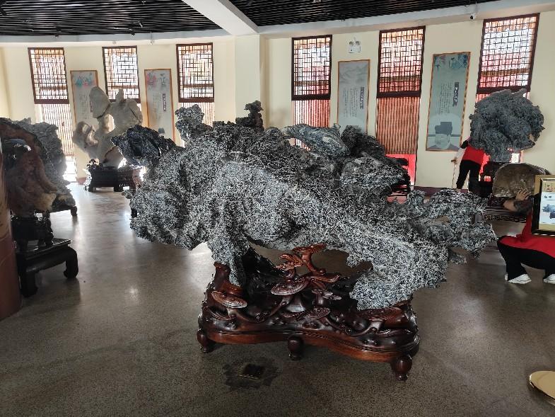 而后,實(shí)踐團(tuán)在館中參觀了大大小小的靈璧奇石及石雕。靈璧石形態(tài)各異,紋理復(fù)雜,引人無(wú)限遐想。