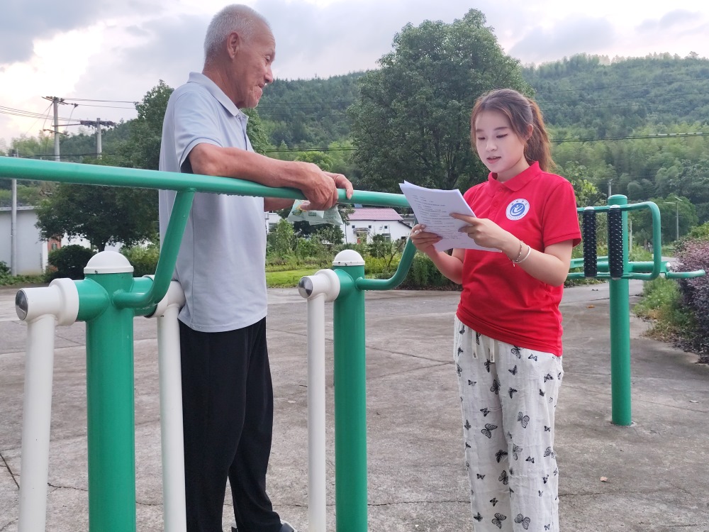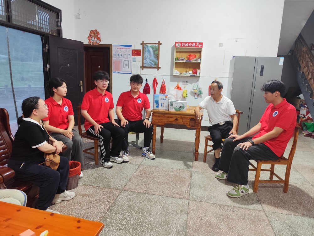 實(shí)踐團(tuán)還專(zhuān)門(mén)去拜訪(fǎng)了一位有著40年黨齡的退休的老教師蔣老師,蔣老師經(jīng)歷過(guò)文化大革命和恢復(fù)高考,是一位德高望重的老教師。一走進(jìn)蔣老師的家,便能感受到一種濃厚的生活氣息和歲月的沉淀。墻上掛著一幅幅老照片,記錄著蔣老師年輕時(shí)的風(fēng)采、教學(xué)生涯中的點(diǎn)點(diǎn)滴滴以及闔家歡樂(lè)的合照。這些照片不僅見(jiàn)證了蔣老師個(gè)人的歷史,也映射出了一代又一代人的成長(zhǎng)與變遷。后來(lái)隨著鄉(xiāng)村振興戰(zhàn)略的推動(dòng),蔣老師一家也緊跟政策,利用自家的院落和周邊的自然風(fēng)光,開(kāi)了一家農(nóng)家樂(lè)。