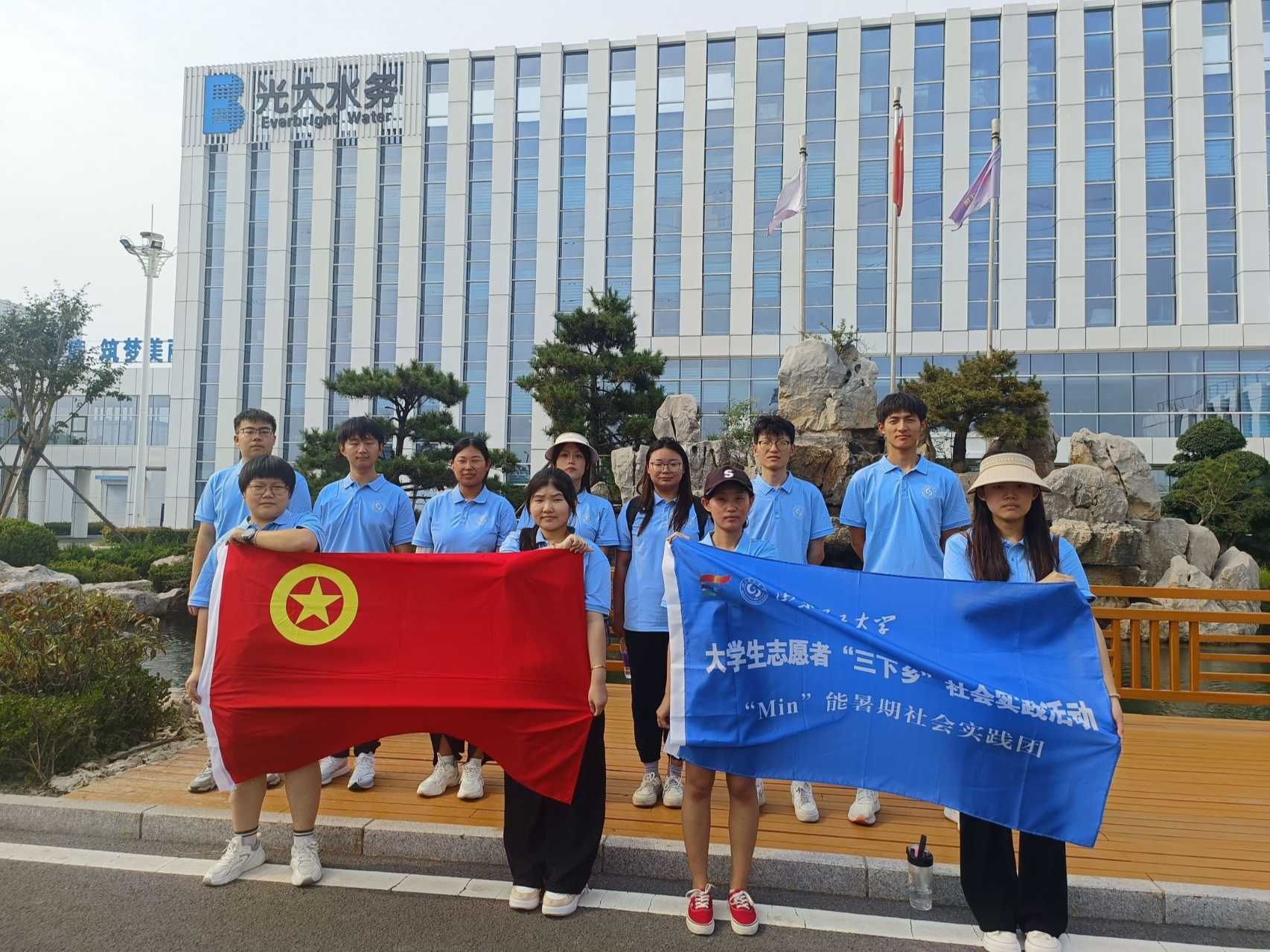 圖為 “Min”能社會實(shí)踐團(tuán)在光大水務(wù)的合照