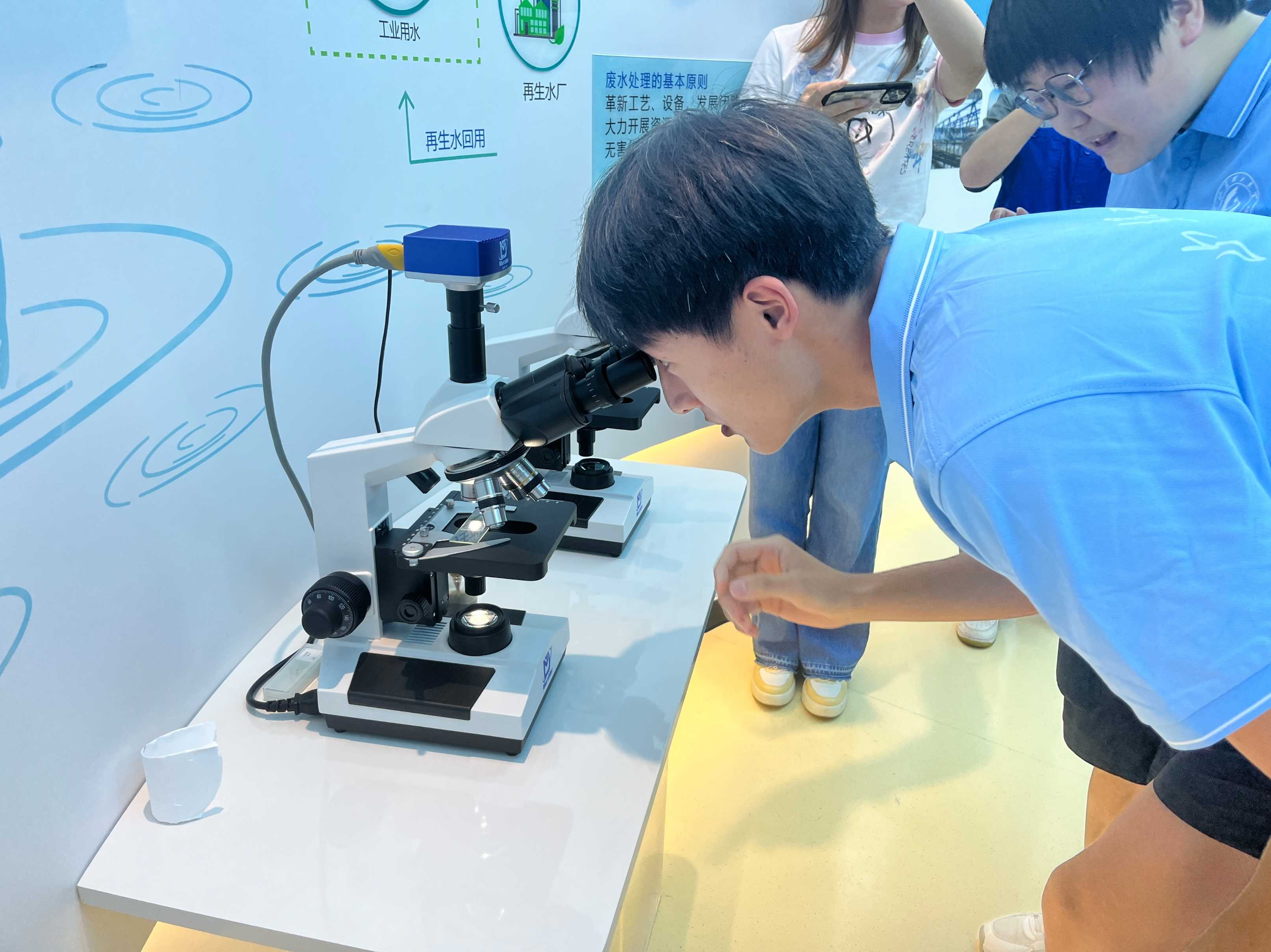 圖為“Min”能社會實(shí)踐團(tuán)成員利用高精度顯微鏡觀察污水