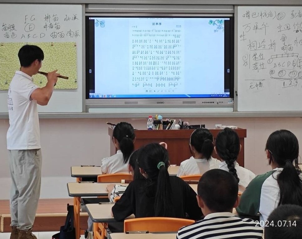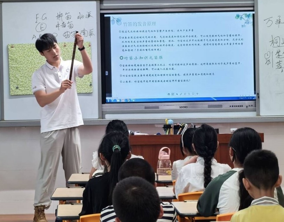 竹笛教學(xué)悠揚(yáng),傳承文化之美隨著上午的課程安排逐漸進(jìn)入尾聲,一節(jié)別開(kāi)生面的中國(guó)竹笛教學(xué)課成為了當(dāng)天的亮點(diǎn)。支教隊(duì)員首先向?qū)W生們介紹了中國(guó)竹笛的歷史和文化背景,激發(fā)了學(xué)生們對(duì)這門(mén)傳統(tǒng)樂(lè)器的濃厚興趣。隨后,該隊(duì)員耐心地講解了中國(guó)竹笛的基本構(gòu)造、吹奏技巧和指法要點(diǎn),并親自示范了簡(jiǎn)單的樂(lè)曲演奏。