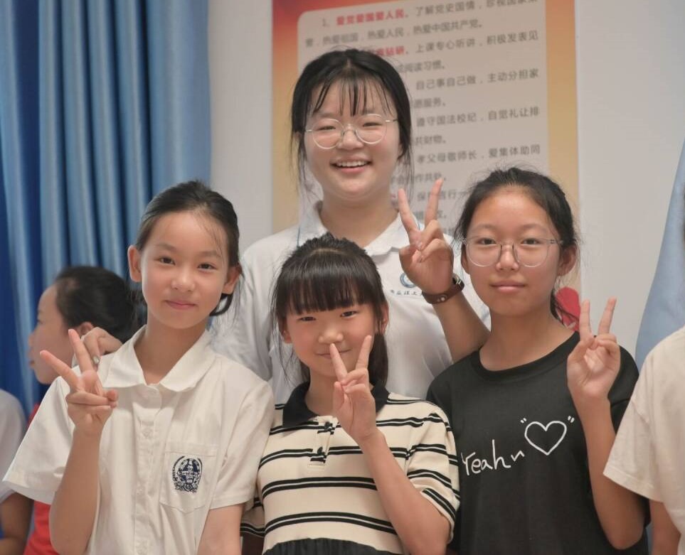 圖為支教隊(duì)員孫瑩瑩與學(xué)生們的合影 王梓仰 攝