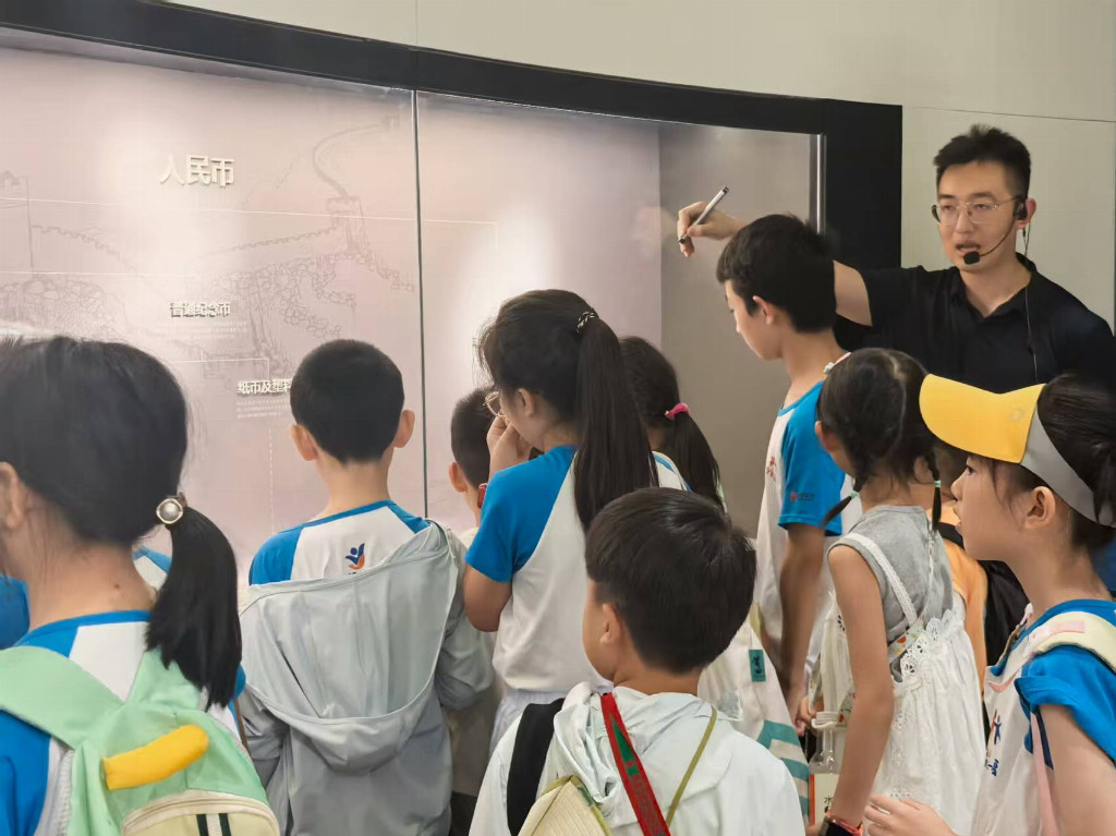 此外,團(tuán)隊(duì)還帶領(lǐng)孩子們前往南京永銀錢幣博物館開展校外研學(xué)活動(dòng)。在博物館講解員的引導(dǎo)下,孩子們先后參觀了古代錢幣展區(qū)、近代錢幣展區(qū)以及世界錢幣展區(qū),欣賞了從商周時(shí)期的貝幣到現(xiàn)代的數(shù)字貨幣等千余件珍貴藏品。通過講解員的細(xì)致講解,孩子們了解了不同歷史時(shí)期貨幣的形制、特點(diǎn)及背后的歷史故事,進(jìn)一步拓寬了視野,加深了對(duì)貨幣文化的理解。