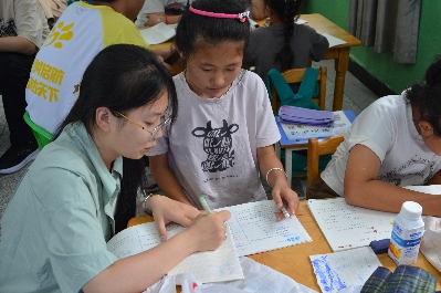 課程結(jié)束后,支教團(tuán)隊(duì)繼續(xù)為學(xué)生們提供作業(yè)輔導(dǎo)服務(wù),每張桌子都有團(tuán)隊(duì)成員耐心解答學(xué)生們的疑問,直至放學(xué)。