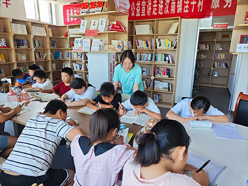 圖為實踐團成員在洼子村鄉(xiāng)村書屋支教