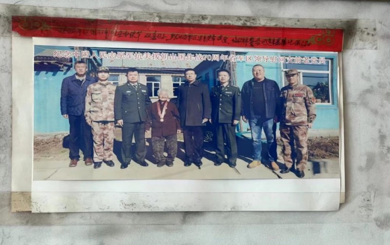 弦歌不綴,薪火相傳。當(dāng)年,年輕的奶奶懷著滿腔熱血奔赴戰(zhàn)場,面對(duì)槍林彈雨,她毫不畏懼,用堅(jiān)韌和勇氣書寫著家國情懷。如今,歲月在奶奶臉上刻下了深深的痕跡,卻無法磨滅她心中的信念。在和奶奶深入交談過后,奶奶給我們展示了她掛在墻上的和中央軍區(qū)領(lǐng)導(dǎo)的合影、抗美援朝戰(zhàn)爭紀(jì)念章、抗美援朝勝利70周年紀(jì)念章等,其中一張老舊泛黃的紙張引起了我們的注意,這是奶奶一直留存至今的《中國人民志愿軍戰(zhàn)歌》的曲譜。看著慷慨激昂的歌詞,我們?cè)僖淮胃惺艿搅丝姑涝媳砩纤w現(xiàn)的愛國主義精神和無私奉獻(xiàn)精神。他們用自己的生命和鮮血,換來了今天的和平幸福生活。 他們的事跡激勵(lì)著我們不斷前行,為了祖國的繁榮富強(qiáng)而努力奮斗。奶奶看著我們遺憾又滿懷期待的說:“我年紀(jì)大了,只能坐在電視前看著祖國發(fā)展。看著你們年輕一代成長起來我心中十分高興,有人接替我們?nèi)ソㄔO(shè)國家了,你們一定要好好的學(xué)習(xí),好好的工作,付出百倍的努力投身于祖國建設(shè),實(shí)現(xiàn)中華民族的偉大復(fù)興。”奶奶的叮囑讓實(shí)踐團(tuán)隊(duì)既感動(dòng)又振奮成員張祺表示:“我們感謝有您這樣的革命前輩,讓我們過上了現(xiàn)在的幸福生活。現(xiàn)在該是我們青年一代努力回報(bào)您的時(shí)候,我們一定不會(huì)辜負(fù)您們老一輩革命家的期望,始終銘記革命歷史、傳承紅色基因,為新時(shí)代祖國建設(shè)添磚加瓦,為實(shí)現(xiàn)中華民族的偉大復(fù)興貢獻(xiàn)青春力量!”