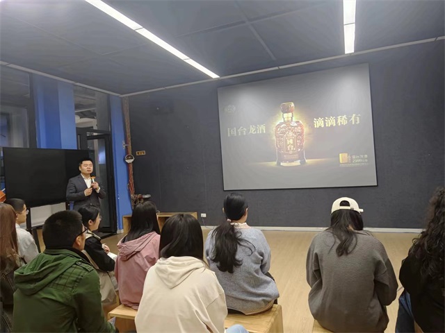 (圖一)國臺(tái)酒業(yè)的負(fù)責(zé)人首先對(duì)公司當(dāng)前的發(fā)展前景和業(yè)務(wù)范圍進(jìn)行了介紹,公司深入貫徹新發(fā)展理念,走新型工業(yè)化道路,秉承傳統(tǒng)不泥古,科學(xué)創(chuàng)新不離宗,持續(xù)推動(dòng)傳統(tǒng)釀造向智能釀造轉(zhuǎn)型升級(jí)。國臺(tái)酒業(yè)連續(xù)六年入選央視“品牌強(qiáng)國工程”,成功躋身中國一線白酒企業(yè)和醬香型白酒主流品牌,了解到國臺(tái)酒業(yè)良好的發(fā)展前景,同學(xué)們表現(xiàn)出了極大的興趣。