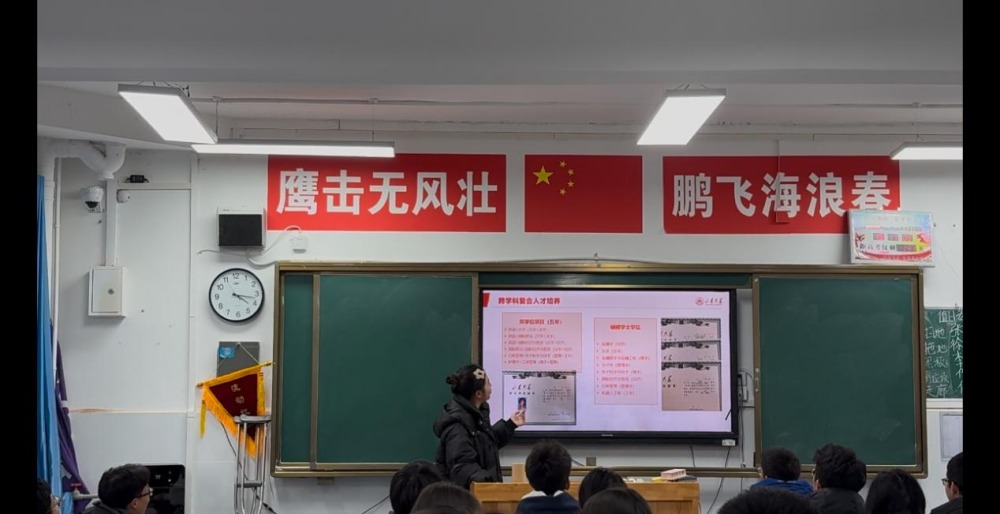 宣講的內(nèi)容,我主要圍繞三個方面展開。首先,我向他們介紹了山東大學(xué),作為中國知名的綜合性大學(xué)之一,山東大學(xué)擁有優(yōu)秀的師資力量、豐富的學(xué)術(shù)資源和良好的教育環(huán)境。我希望能通過我們的視角,讓他們更加具象地了解這所百年老校,從而在他們心中種下一顆向往的種子。其次,我分享了學(xué)習(xí)方法,并解答了他們生活中的困惑,希望他們能在學(xué)習(xí)的過程中少走彎路,找到適合自己的節(jié)奏,為高考增添信心,減少遺憾。最后,我留下了聯(lián)系方式,以便他們在報考時隨時向我們咨詢,解決力所能及的問題。